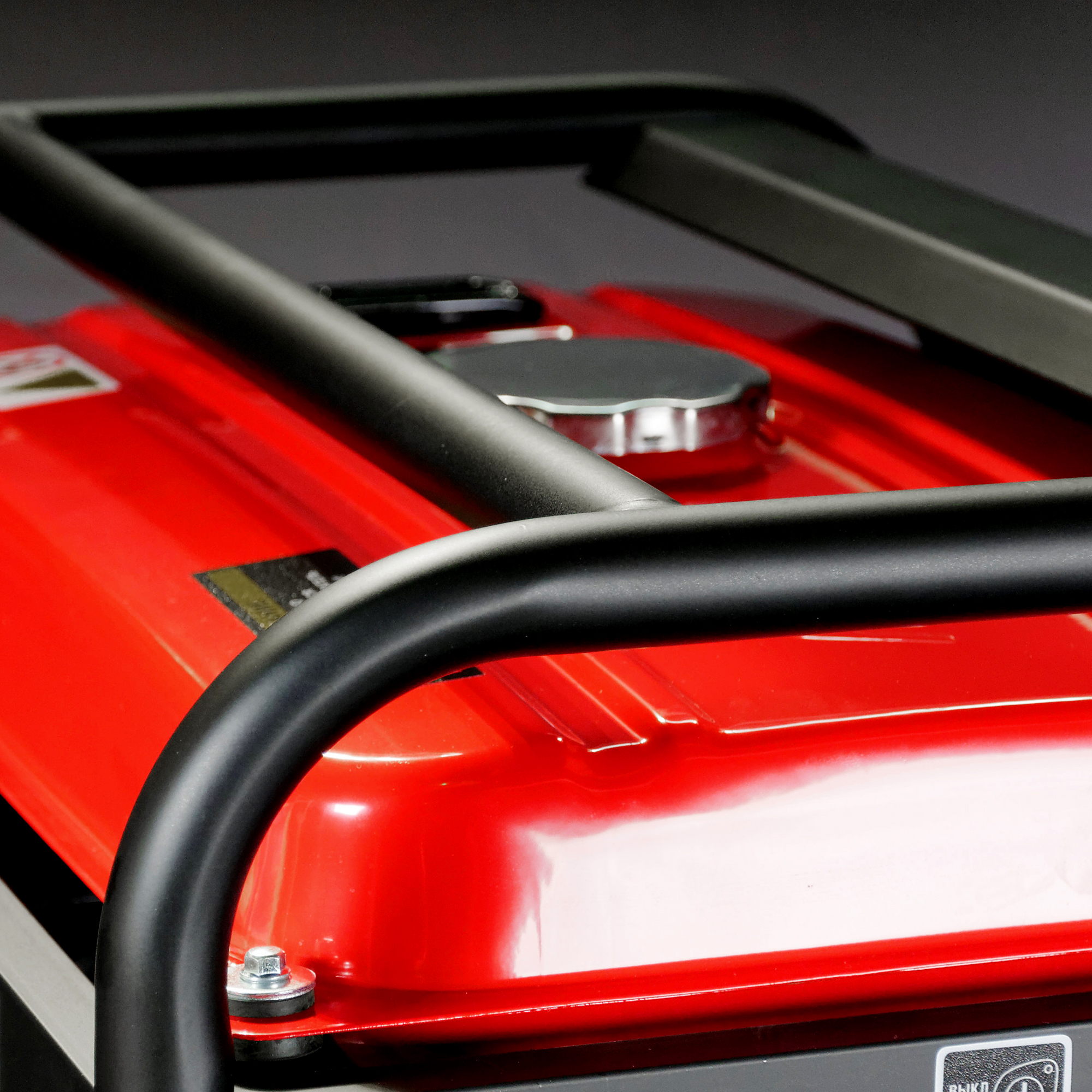 Бензогенератор имеет надежный сварной топливный бак объемом 25 л, оснащенный указателем уровня топлива и фильтром-сеткой.
